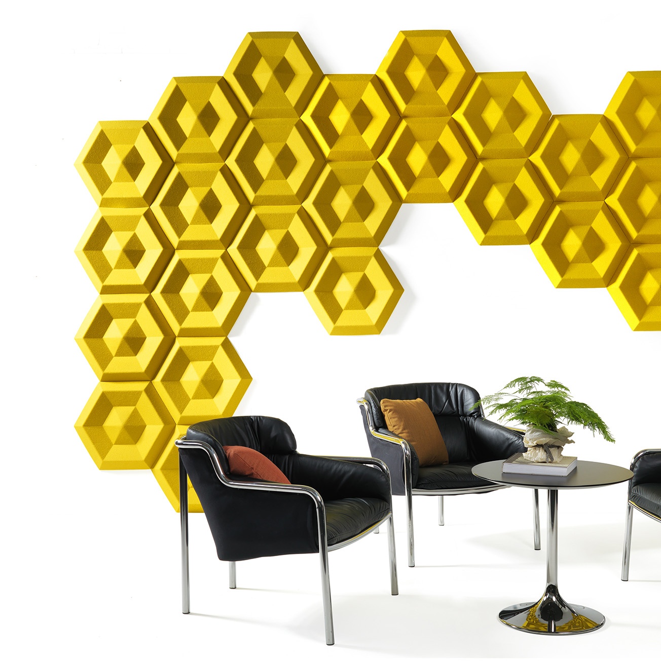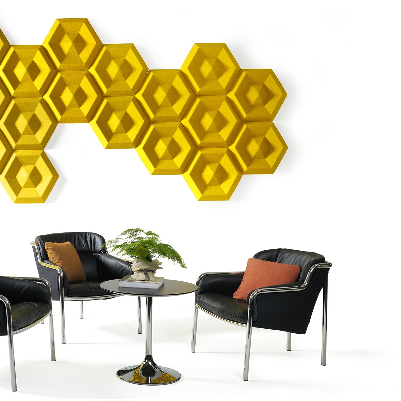 It should be clear that Johanson's designers mostly take their inspiration from nature. Not only do the materials have a natural look, but also the design is often directly derived from nature. This certainly applies to the Beehive, the acoustic solution where the honeycomb is clearly visible. The relief creates sound diffusion, distributing sound waves more evenly across the room. A conversation is pleasant to have, while the background noise starts to resemble a quiet hum.