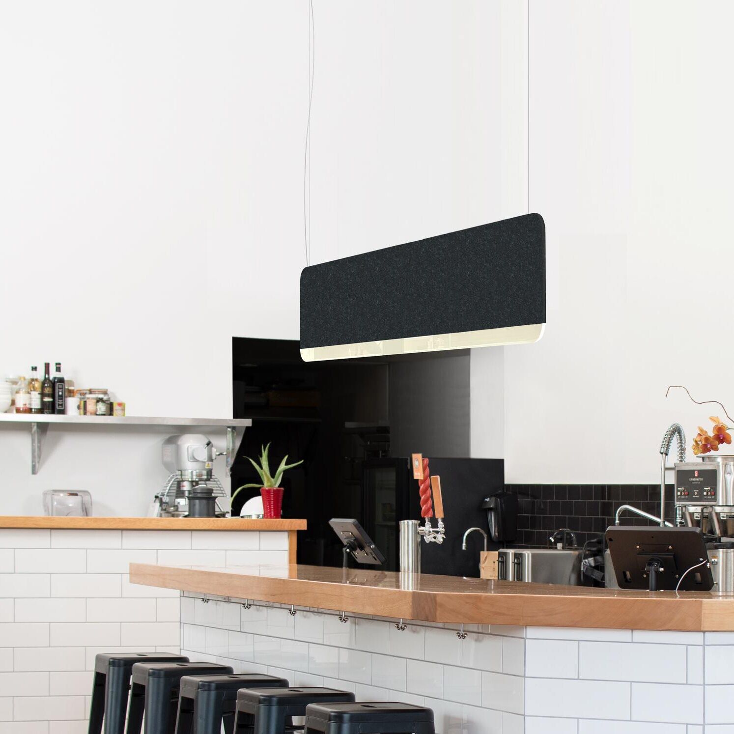 Hanglamp SLAB 150 is een esthetisch aantrekkelijke akoestische lamp die aan het plafond wordt bevestigd. Het is bedekt met vilt van 100% merinowol, waardoor het omgevingsgeluid dempt. Deze hanglamp SLAB 150 heeft een minder groot oppervlak dan de SLAB 210, waardoor de akoestische functie ook wat afneemt. Maar door de kleinere afmeting, is de akoestische lamp wel wat gemakkelijker in gebruik in bijvoorbeeld de keuken, de huiskamer, maar ook in horecaruimtes of in kantooromgeving. De flinterdunne SLAB 150 is onderdeel van de akoestische lampenserie SLAB van ANDlight.